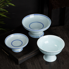 景德镇创意中式陶瓷水果盘客厅家用复古蓝边高脚简约瓜子盘干果盘