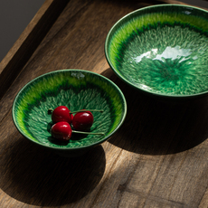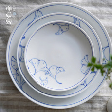 青流十草盘子 日本进口濑户烧汤盘菜盘果盘手工陶制皿复古风圆盘