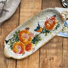 【叶子手作】手绘四边花口盘釉下彩日式甜点果盘可爱作家器圆形