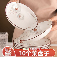 景德镇盘子餐具陶瓷盘家用圆盘子创意碟子中式菜盘子水果盘6个装