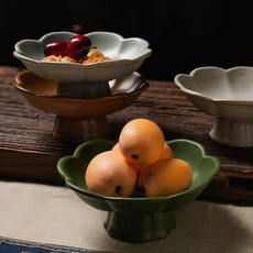 日式创意高脚陶瓷果盘景德镇古风贡盘花瓣零食小吃碟茶点干果摆盘