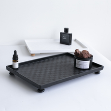 北欧黑白棋盘格托盘长方形家用水杯茶杯盘塑料防水盘茶盘水果盘