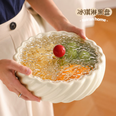 ins水晶玻璃水果盘圆形茶盘点心碟小吃盘沙拉盘KTV酒吧盘高档盘