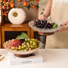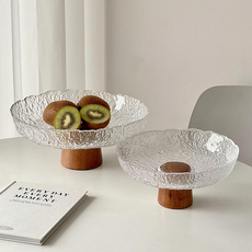 圆形透明玻璃高脚水果盘商用婚宴酒店KTV切水果摆放盘点心大托盘