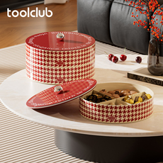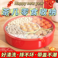 新年干果盘家用客厅分格零食糖果盒轻奢带盖零食果盘旋转收纳盘子