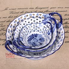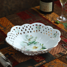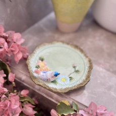 方亚外单手工釉下彩东方巴黎花鸟陶瓷点心盘水果盘沙拉盘干果盘