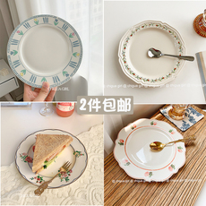 韩国ins藤条花边浮雕餐盘郁金香盘法式少女陶瓷盘甜品盘水果盘子