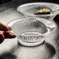 2026新款水晶玻璃碗水果盘精致小果盘家用轻奢高档高级感透明竖纹