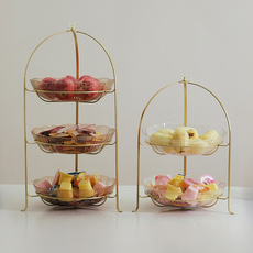 糖果盘零食盘干果水果盘创意三层不锈钢点心架下午茶展示架摆件