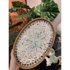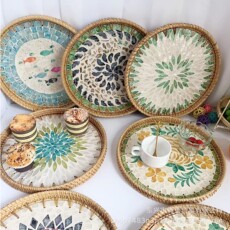 越南藤编彩贝壳零食果盘装饰摆件首饰收纳托盘摆盘茶几杂物托盘