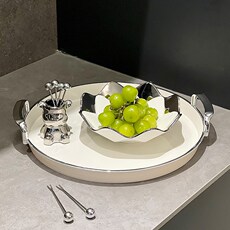 高颜值双耳托盘茶水盘子 高级感家用水果盘点心盘零食盘蛋糕平盘