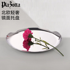 不锈钢镜面盘平底点心盘商用自助餐盘带耳托盘家用水果盘新款餐盘