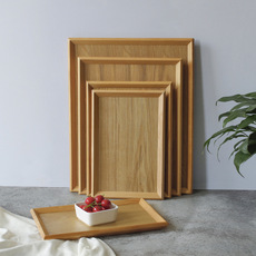 日式实木端菜盘西餐托盘早餐平盘水果盘木质长方形茶杯托盘纯色