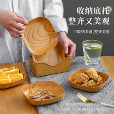 新款轻奢创意仿木纹塑料吐骨盒下午茶点心托盘木纹碟高颜值水果盘