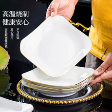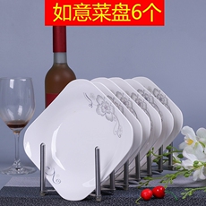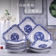 6只装家用特价八角盘菜盘 深盘菜盘水果盘创意饭盘方盘陶瓷盘餐具