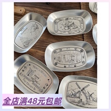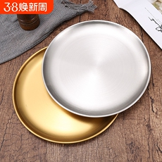 不锈钢盘子304食品级加厚家用圆 形盛菜水果盘托餐盘饺子小吃碟子
