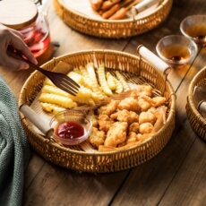 法式轻奢高档天然越南藤编贝壳托盘家用客厅茶几茶盘收纳水果盘子