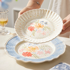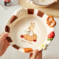 手绘甜品盘子陶瓷餐盘高颜值网红餐具家用可爱水果盘沙拉盘早餐盘