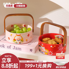 集物纪北欧风糖葫芦创意新年陶瓷零食盘木柄坚果小吃盘水果盘