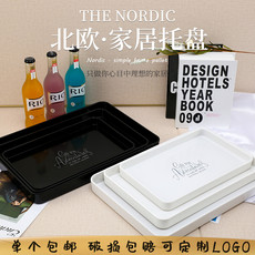 仿木纹托盘家用放茶杯水杯子茶盘水果盘子塑料长方形商用收纳餐盘