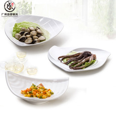 白色密胺三角形菜盘不规则点心盘水果盘火锅盘子商用酒店专用餐具