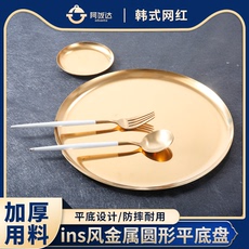 浅盘圆形金色托盘咖啡小吃盘甜品蛋糕盘首饰收纳盘茶盘摆盘果盘