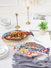 创意大号鱼盘不规则异形盘水果盘欧式家居餐具摆盘托盘波西米亚风