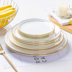 盘子菜盘家用景德镇陶瓷盘西水果盘摆台骨碟子金边骨瓷餐具盘套装