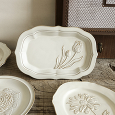 法式浮雕西餐盘牛排平盘陶瓷甜品盘水果盘家用早餐盘子好看的餐具