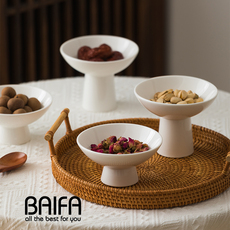 中式复古茶点盘陶瓷高脚盘精致高足点心盘家用水果盘零食干果托盘