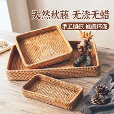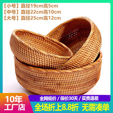 越南藤编托盘贝壳托盘水果盘手工编织日式面包蓝馒头筐点心篮子