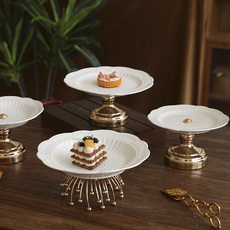 欧式浮雕陶瓷高脚果盘下午茶点心架水果盘零食甜品台轻奢蛋糕托盘