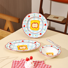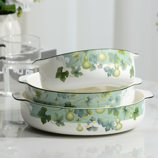 金岚玉五福临门骨瓷双耳盘子家用菜盘水果盘可爱早餐盘带把汤盘