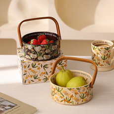 法式复古陶瓷水果盘高端精致高颜值果盘家用2026新款客厅茶几提篮