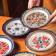 陶瓷盘子酒店饭店餐厅菜盘摆盘家用饭盘果盘手绘釉下彩圆盘浅汤盘