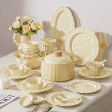 浮雕复古碗碟套装餐具家用2026新款陶瓷结婚乔迁新婚礼物送新人碗
