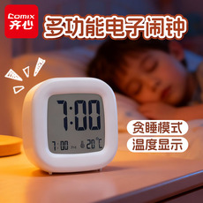 得力闹钟中小学生用背光电子钟宿舍床头桌面简约数显儿童电子时钟