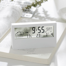 LED静音智能天气电子钟表ins桌面时钟万年历台式透明学生用小闹钟