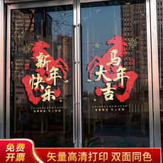 2026马年新年快乐玻璃贴纸店铺装饰春节装饰春节门贴静电贴纸
