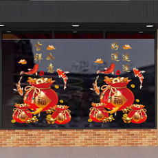 新年装饰窗花福袋贴画春节元旦玻璃橱窗静电贴过年氛围布置窗贴纸