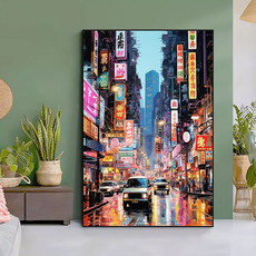 香港街头高清48色 风景维多利亚港湾diy数字油画 手绘填色油彩画