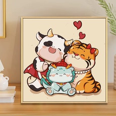 生肖一家人数字油画diy填充填色手工绘动物全家福丙烯画装饰挂画