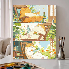 夏日时光 diy数字油画填充手绘手工插画治愈系卡通减压油彩涂色画