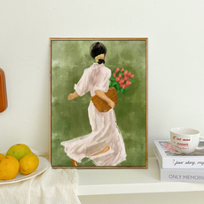 捧花女孩背影diy数字油画手绘丙烯填色手工填充涂色卧室装饰挂墙