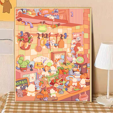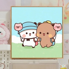 熊猫乐园数字油画diy填色卡通可爱治愈系解压丙烯油彩画涂色填充
