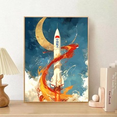 中国航天数字油画diy宇航员火箭月球手工自己填色填充丙烯油彩画