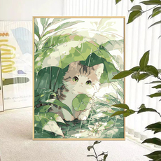 雨中猫咪 数字油画diy填充涂色手工手绘可爱丙烯油彩画装饰挂画
