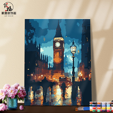 自油自画 数字油画diy填充手绘手工填色涂色玄关油彩画 雨中花店