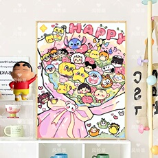 可爱樱桃小丸子diy数字油画卡通动漫手工填色丸事顺利丙烯装饰画