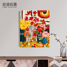 花卉diy数字油画填充填色手工手绘丙烯画超简单打发时间小尺寸画